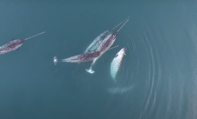 Drones han capturado imágenes de los narvales usando sus impactantes colmillos para algo más de lo que la ciencia esperaba