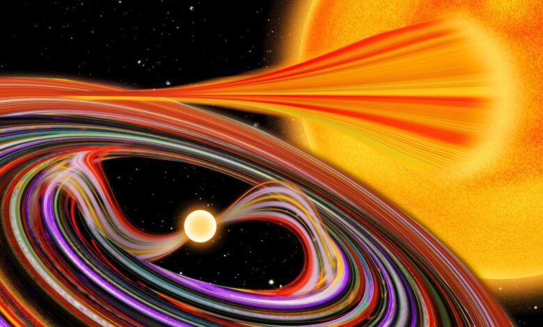 Así se ve una estrella “vampiro” succionando material de su vecina en un sistema binario