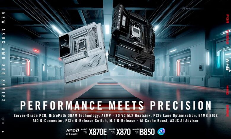 ASUS ha presentado una amplia gama de nuevas tarjetas madre AMD, incluyendo modelos ROG X870E y tarjetas madre Neo Refresh para las familias ROG Strix, TUF Gaming y ProArt para X870E, X870 y B850. Estos modelos soportan los últimos procesadores Zen 5 Ryzen 9000 Series.