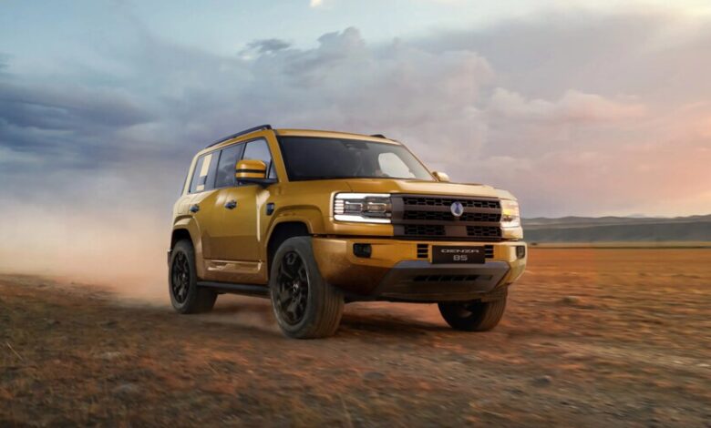 El primer modelo es Denza B5. Esta SUV PHEV tiene enfoque off-road y chasis de escalera. Declara un peso de 3.7 toneladas. Usa sistema híbrido enchufable DMO con motor 1.5 litros turbo más dos motores eléctricos, uno por eje. Sus cifras de potencia final marca 677 caballos de fuerza y 560 libras-pie de torque, con tracción integral inteligente y cero a 100 kilómetros por hora en 4.8 segundos.