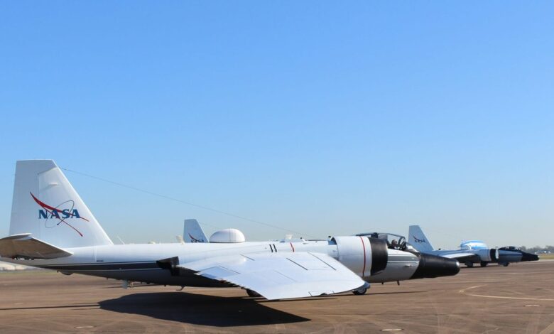 Uno de los tres grandes aviones WB-57 de la NASA realizó un aterrizaje de emergencia en Ellington Field el martes por la mañana en el sureste de Houston.