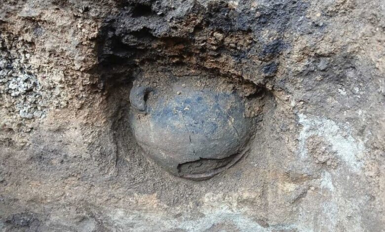 Uno de los materiales recuperados es una olla globular, de aproximadamente 30 centímetros de diámetro, descubierta a principios de enero de 2026. Posiblemente, este objeto data del Epiclásico (600-900 d.C.) y se asocia a la plataforma de un basamento, similar a otras registradas en la región. Este tipo de objetos se suelen vincular con prácticas funerarias, en especial con entierros de recién nacidos.