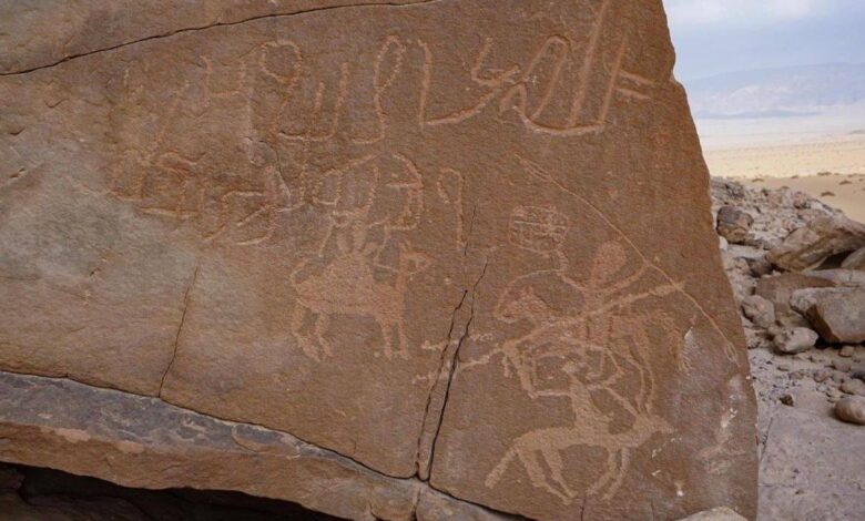 Algunas de estas representaciones incluso podrían remontarse a 5,500 o hasta 10,000 años antes de nuestra era. Estas imágenes muestran escenas de caza con arcos y perros, así como figuras de camellos, caballos y jinetes pertenecientes a épocas posteriores, además de inscripciones árabes tempranas. Esta diversidad iconográfica sugiere la coexistencia de distintas tradiciones culturales en el Sinaí a lo largo de los siglos.