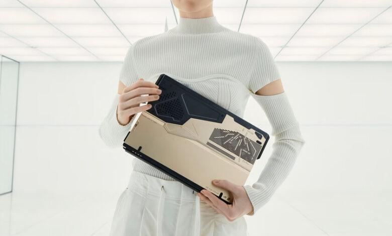 La tablet incluye teclado desmontable, kickstand y ventilaciones que fueron intervenidas con un enfoque creativo poco común en la industria. Con apenas 1.4 cm de grosor y un peso de 1.7 kg, el resultado es un dispositivo que no solo luce distinto, sino que es bastante ligero si lo comparamos con una tradicional laptop gamer, pero claro, sigue siendo mas pesada que una ROG Ally, por ejemplo.